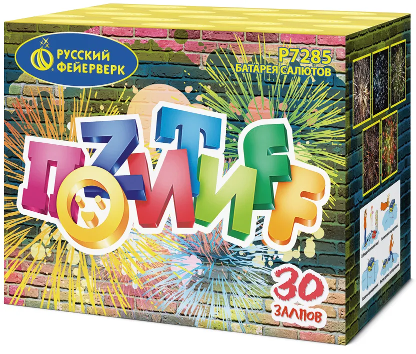 Батарея салютов Позитифф Краснодар Р7285 купить 3 600 руб. 30 залпов Русский Фейерверк магазин круглосуточно ночная доставка в Краснодаре | krasnodar.piroclub.ru